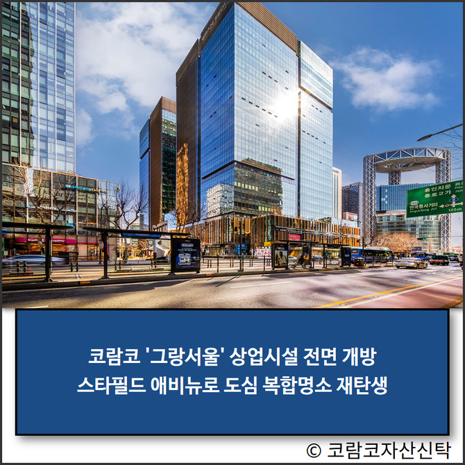 코람코자산신탁(이하 코람코)이 서울 도심권 업무지구(CBD)를 대표하는 복합빌딩 '그랑서울'의 리뉴얼을 완료하고 오는 28일 상업시설을 전면 개방한다.