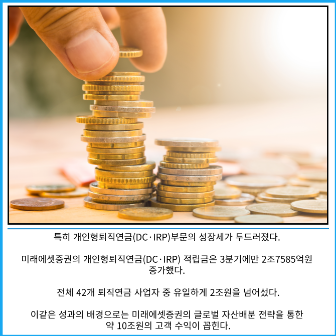고용노동부가 발표한 2025년 3분기 퇴직연금 적립금 공시에서 따르면 미래에셋증권의 올해 총 퇴직연금 적립금 누계액은 5조7299억 원 증가한 것으로 집계됐다.