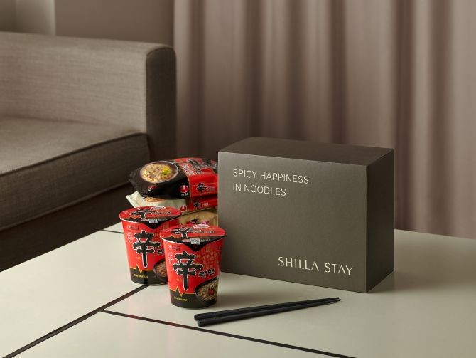K푸드 트렌드에 맞춰 출시된 '스파이시 해피니스 인 신라스테이' 패키지는 한국의 대표 라면 브랜드 '농심 신라면'과의 협업으로, 객실 1박과 함께 '신라스테이X신라면 기프트 박스'를 제공한다. 기프트 박스에는 신라면, 건면, 블랙, 툼바 등 봉지라면 4종과 신라면 작은 컵 2개, 한정판 신라스테이 젓가락 2세트가 포함돼 있다.
