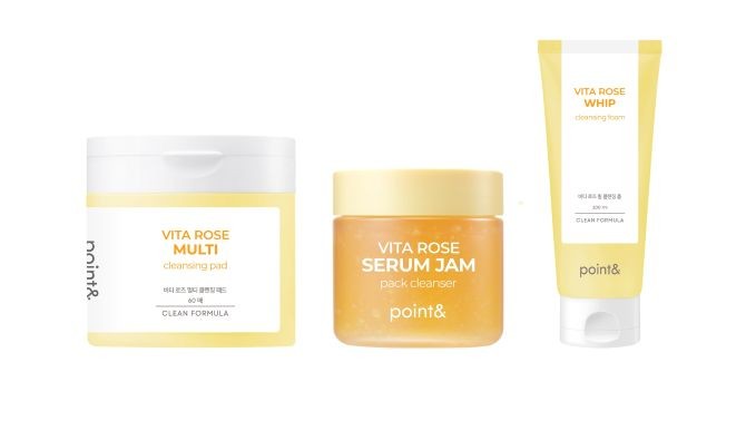 포인트앤 비타 로즈 라인은 세안 단계별로 선택해 사용할 수 있도록 △비타 로즈 멀티 클렌징 패드 △비타 로즈 세럼잼 팩 클렌저 △비타 로즈 휩 클렌징 폼 등 3종으로 구성됐다.