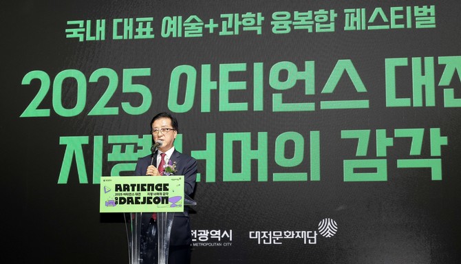 조 의장은 "아티언스 대전은 2011년 전국 최초로 시작된 예술·과학 융복합 프로젝트로, 지금까지 100여 명의 예술가와 과학자들이 협업 작품을 선보인 대한민국 유일의 창작 플랫폼"이라며 "실험실의 호기심이 예술의 무대로 이어지는 축제는 과학수도 대전의 상징적인 모습"이라고 말했다.