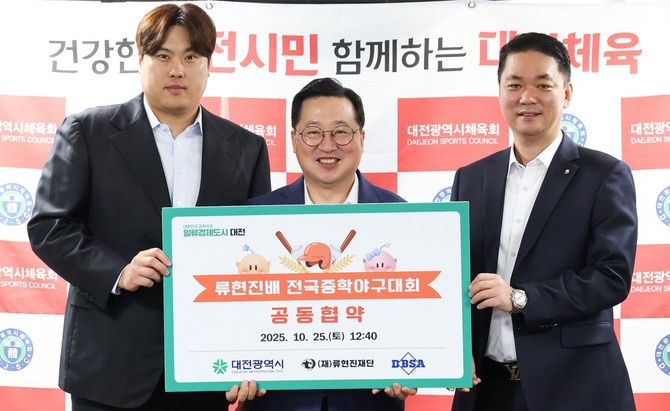 [프라임경제] 대전시는 25일 류현진 선수 이름을 딴 전국 중학교 야구대회 창설을 위해 류현진 재단, 대전시야구소프트볼협회와 공동협약을 체결했다.
