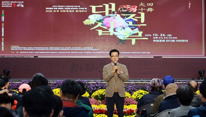 이날 공연에는 지역 단체·기관장과 시민 등 100여 명이 참석했으며, 주요 내빈의 축사를 시작으로 △본향 △계족산 판타지 등 '대전십무' 10개 작품이 무대에 올랐다.