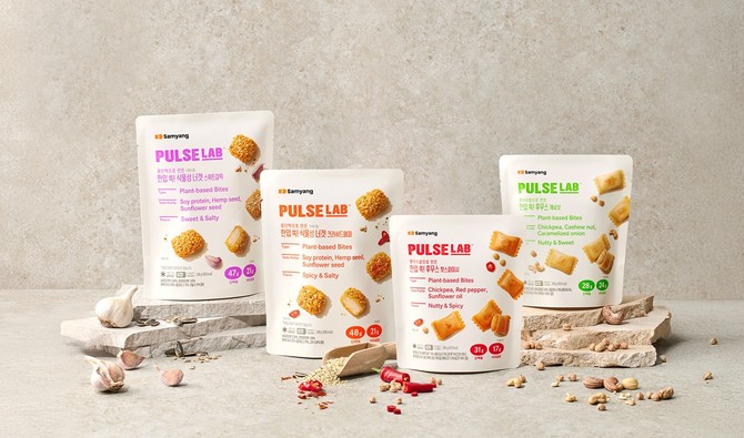 현재 라인업은 '한입 쏙! 후무스' 2종(캐슈넛·핫스파이시)과 '한입 쏙! 식물성 너겟' 2종(스위트갈릭·크러쉬드페퍼) 등 4종이다. 병아리콩과 삼양식품이 자체 개발한 식물성 단백질을 활용해 단백질·식이섬유가 풍부하다.