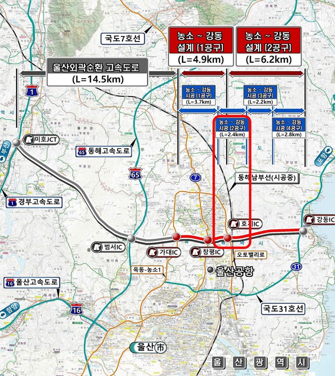 해당 사업은 울산시 '역대 최대 규모' 도로 인프라 프로젝트다. 울산외곽순환도로와 연결해 지역 동서 간 교통 흐름을 개선하는 핵심 구간으로 꼽힌다. 기존 1·3·4공구가 이미 착공된 가운데, 두산건설이 2공구를 수주함으로써 전체 노선이 본격 전면 착공 단계에 진입했다.
