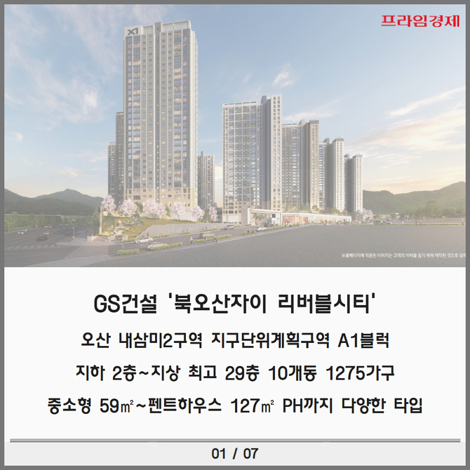 [프라임경제] GS건설(006360)이 경기 오산시 내삼미동 일원에 자이 특화 커뮤니티와 다양한 평면 구성을 더한 새로운 오산 대표 랜드마크 '북오산자이 리버블시티'를 제시한다.