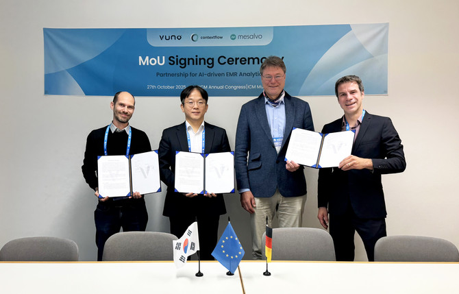 [프라임경제] 의료 인공지능(AI) 기업 뷰노(338220)는 오스트리아 영상진단 AI 기업 Contextflow, 독일 병원정보시스템(HIS) 기업 Mesalvo와 함께 AI 기반 심정지 예측 솔루션 VUNO Med®–DeepCARS®(이하 DeepCARS)의 유럽 시장 진출을 위한 전략적 업무협약(MOU)을 체결했다고 28일 밝혔다.