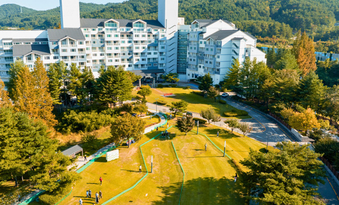 금호리조트 파크골프장은 4297.5㎥ 규모로 7개의 파3홀과 2개의 파4홀로 구성돼 있으며, 본래의 경사진 지형을 그대로 살린 설꼐로 전 세대가 함께 즐길 수 있는 코스가 특징이다.