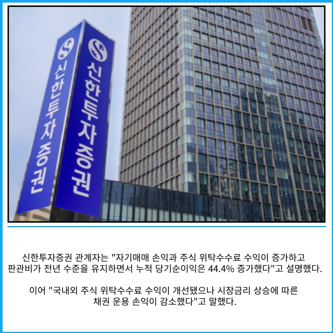 [카드] 신한투자증권, 3분기 영업익 1441억원…전년比 23.5%↑