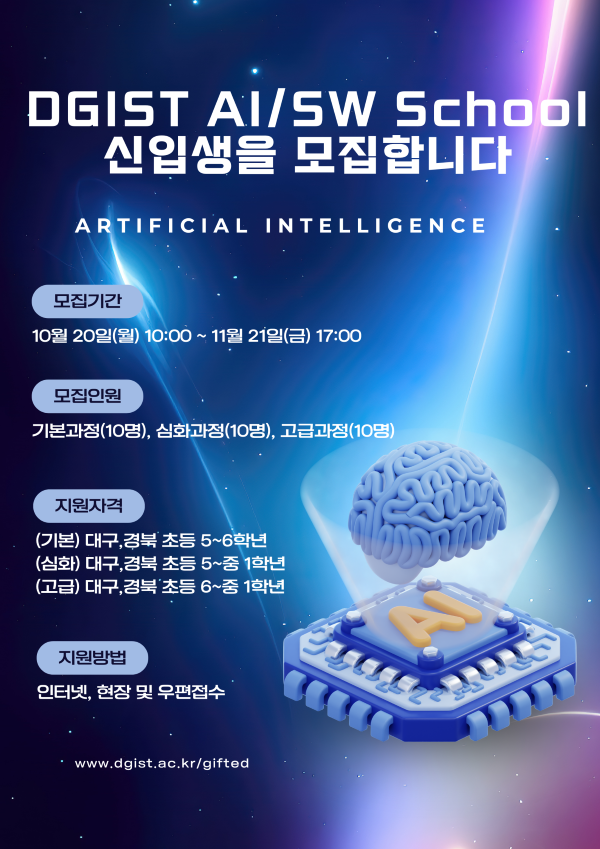 [프라임경제] DGIST(총장 이건우)는 4차 산업혁명 시대를 선도할 지역 거점 AI/SW 고도 영재교육 플랫폼인 'DGIST AI/SW SCHOOL(이하 AI/SW 스쿨)'을 2026년 3월 공식 출범한다.