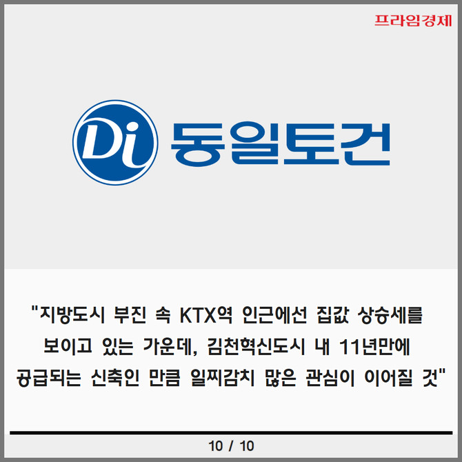 [카드] 동일하이빌 파크레인, 김천혁신도시 11년 만의 신축