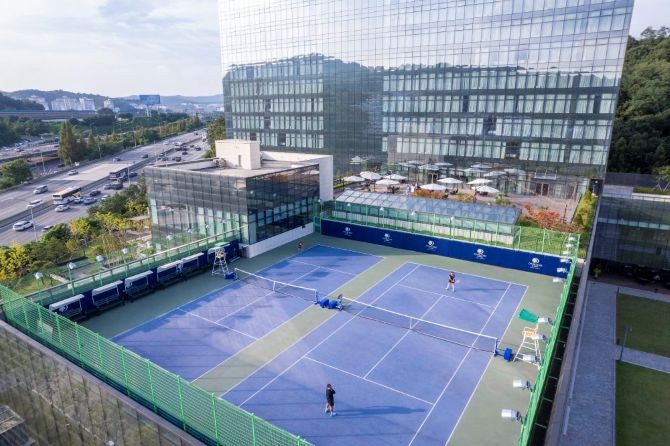 해당 야외 테니스 코트는 뛰어난 시설과 쾌적한 환경으로 테니스 애호가들 사이에서 '테캉스' 명소로 주목받고 있다.
