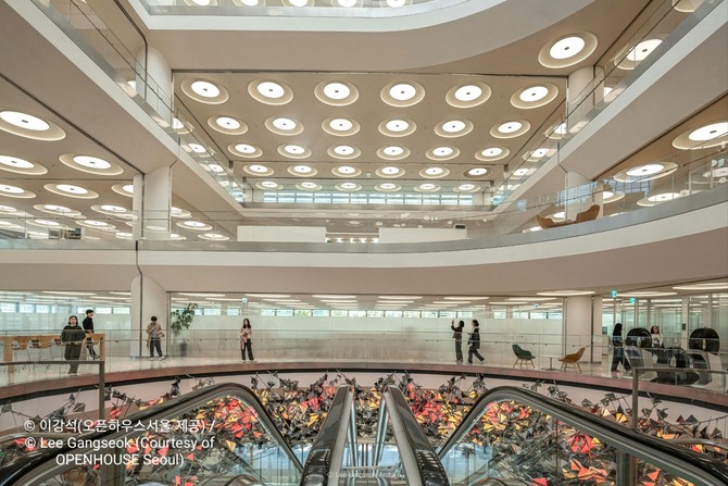 사원에서 임원에 이르기까지 모든 임직원이 자율좌석제를 기반으로 근무하며, 물리적·심리적 장벽을 최소화한 구조 속에서 유연하게 일하는 업무 혁신을 실현하고 있다. 또 태양 고도와 일조량을 고려한 지능형 자연 차광 시스템을 적용해 쾌적한 근무 환경을 조성했다.