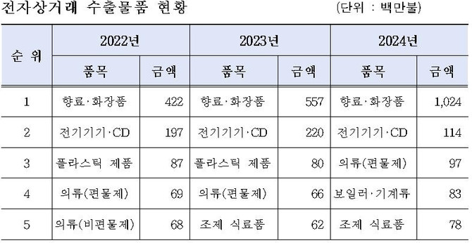 [프라임경제] 전자상거래를 통한 K-뷰티와 K-콘텐츠 수출이 두각을 나타내고 있다. 관세청이 처음으로 공개한 전자상거래 수출 상위 100대 품목에는 화장품·음반·의류 등 한류 소비재가 다수 포함됐다.