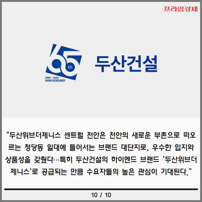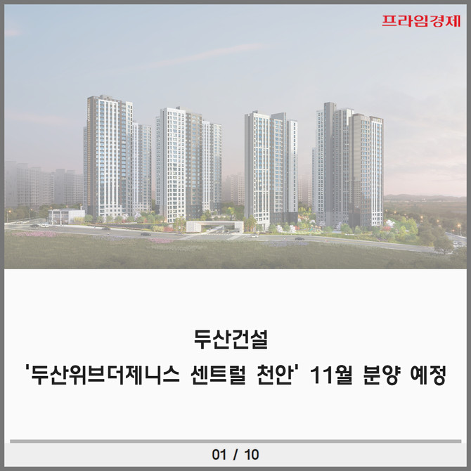 [카드] 1만3000세대 미니신도시 핵심 입지 '두산위브더제니스 센트럴 천안' 분양 임박