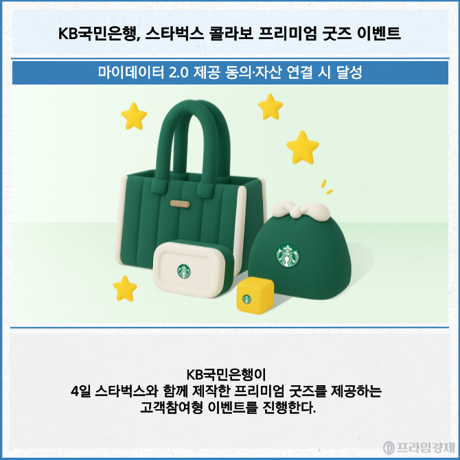[프라임경제] KB국민은행이 4일 스타벅스와 함께 제작한 프리미엄 굿즈를 제공하는 고객참여형 이벤트를 진행한다.