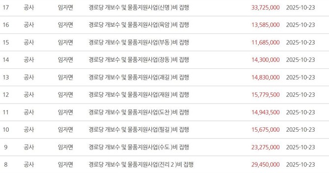 이로써 올 한해 임자면이 A·B업체에 발주한 경로당 사업은 총 14건이며, 금액은 약 3억1400만 원에 이른다. 이 모든 계약은 5000만원 미만으로 책정돼 수의계약 한도 내에 머물렀다.