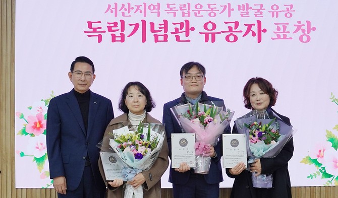 시는 이날 시청 시장실에서 이완섭 서산시장과 독립기념관 직원 등 관계자들이 참석한 가운데 표창 수여식을 개최하고, 지역 독립운동사 복원에 헌신한 이들의 노고를 치하했다.