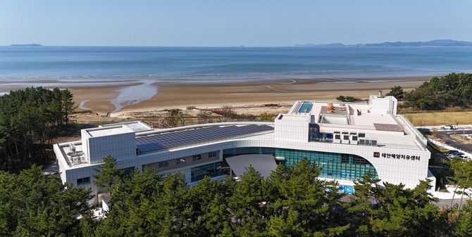 센터는 태안이 자랑하는 피트, 소금, 염지하수 등 천연 해양치유자원을 활용해 다양한 프로그램을 운영하는 종합시설로, 지하 1층·지상 2층, 연면적 8478㎡, 총 사업비 399억원이 투입됐다.