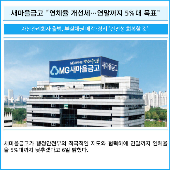 [카드] 새마을금고 "연체율 개선세…연말까지 5%대 목표"