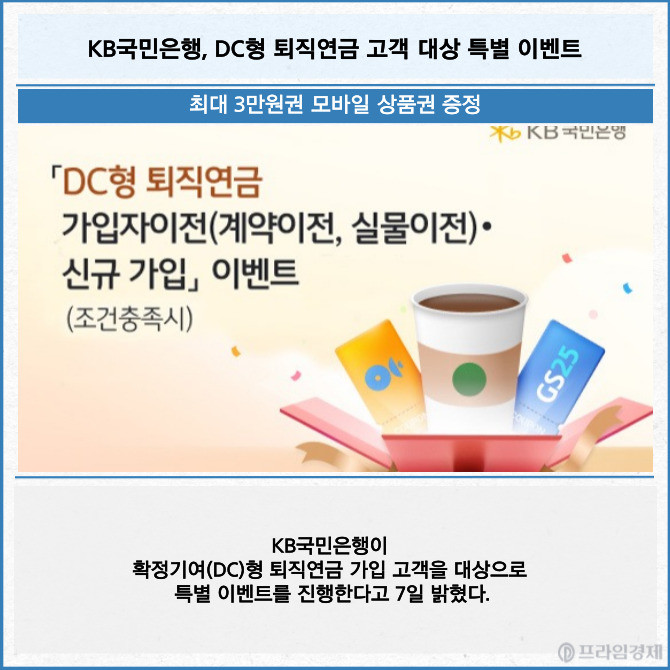 [프라임경제] KB국민은행이 확정기여(DC)형 퇴직연금 가입 고객을 대상으로 특별 이벤트를 진행한다고 7일 밝혔다.