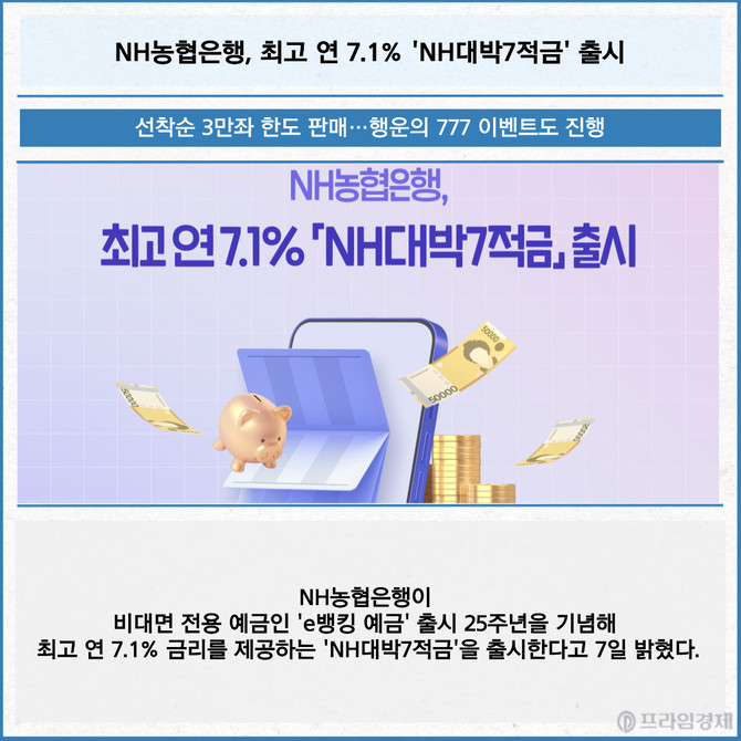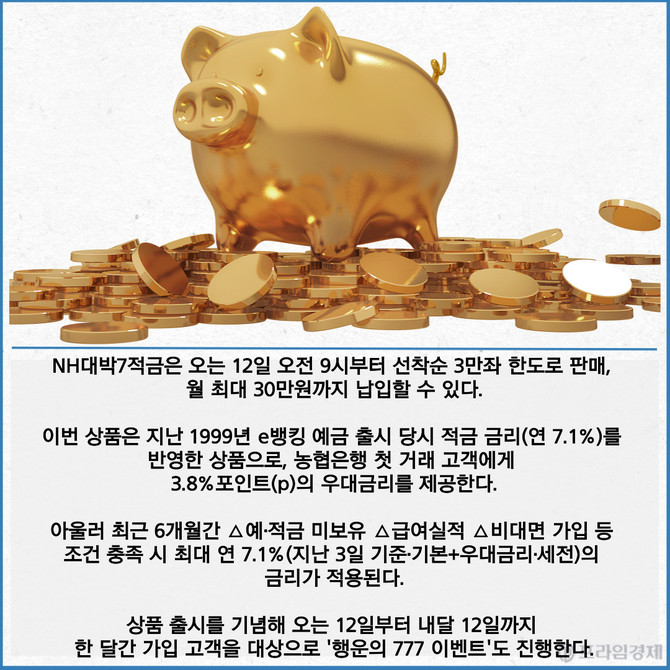[카드] NH농협은행, 최고 연 7.1% 'NH대박7적금' 출시