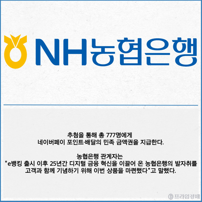 [프라임경제] NH농협은행이 비대면 전용 예금인 'e­뱅킹 예금' 출시 25주년을 기념해 최고 연 7.1% 금리를 제공하는 'NH대박7적금'을 출시한다고 7일 밝혔다.