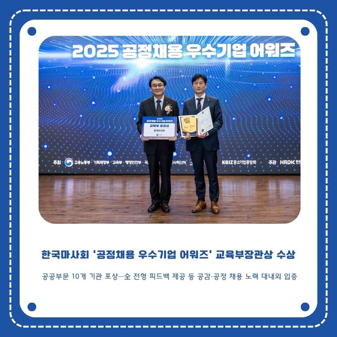 이번 수상으로 다년간의 투명·직무 중심·공감 채용 실천을 통한 공정채용의 성과를 대내외적으로 입증했다.