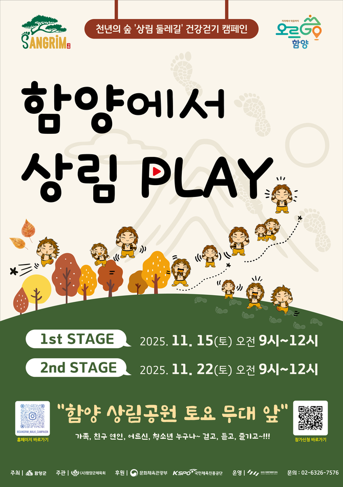 '상림플레이'는 단순한 걷기 행사가 아닌, 참여형 문화·치유 프로그램이다. 이번 캠페인은 '천년의 숲을 걷다'를 주제로 △11월15일 '1막 첫발의 내딛다' △11월22일 '2막 숲과 걷고 서로를 잇다'라는 두 가지 테마로 구성했다.