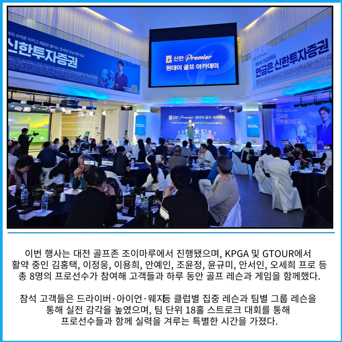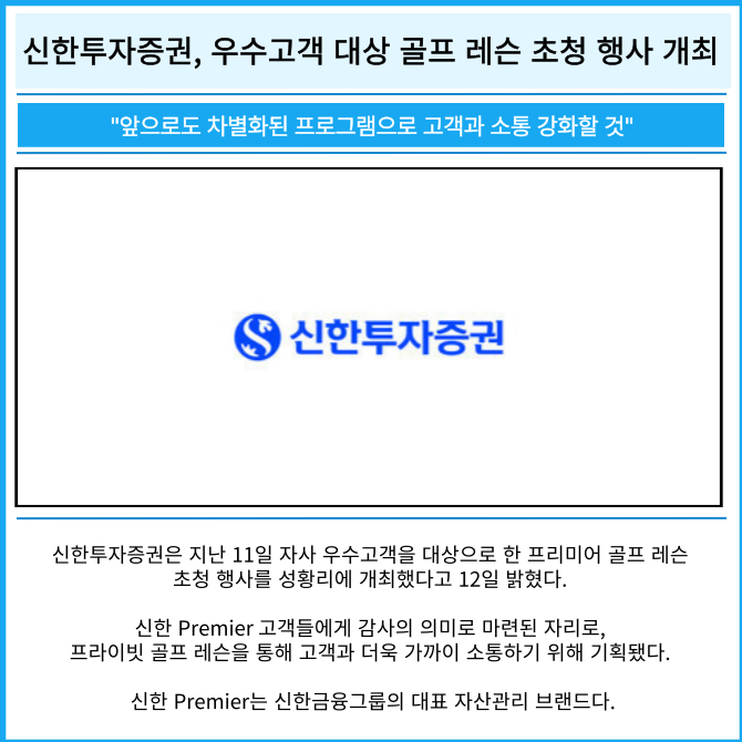 신한 Premier 고객들에게 감사의 의미로 마련된 자리로, 프라이빗 골프 레슨을 통해 고객과 더욱 가까이 소통하기 위해 기획됐다. 신한 Premier는 신한금융그룹의 대표 자산관리 브랜드다.