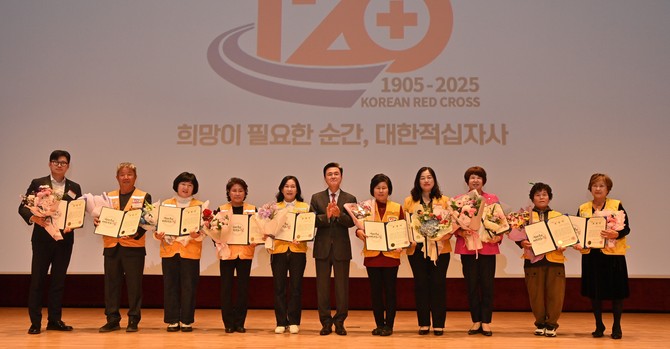 이어 "올해도 재해현장에서 보여준 적십자 가족들의 헌신적인 활약에 도민 모두가 큰 위로와 용기를 얻었다"며 "도민이 힘들 때 가장 먼저 달려가 봉사하는 '노란조끼 영웅들'의 모습을 결코 잊지 않겠다"고 강조했다.