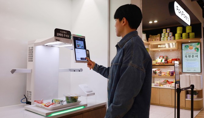 'AI 스캐너'는 간편식 무인 결제 시스템이다. 스캐너 위에 여러 상품을 올리면 AI가 1~2초 만에 인식해 결제까지 자동으로 처리한다. 특히 바코드가 없는 수제 간편식도 사전 이미지 학습을 통해 정확히 인식하는 것이 특징이다.