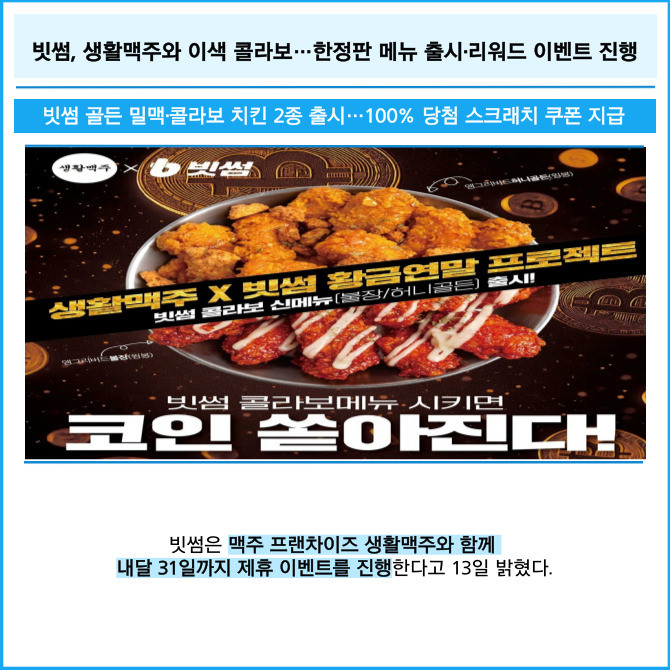 한정판 빗썸 골든 밀맥·콜라보 치킨 2종 출시…100% 당첨 스크래치 쿠폰 지급