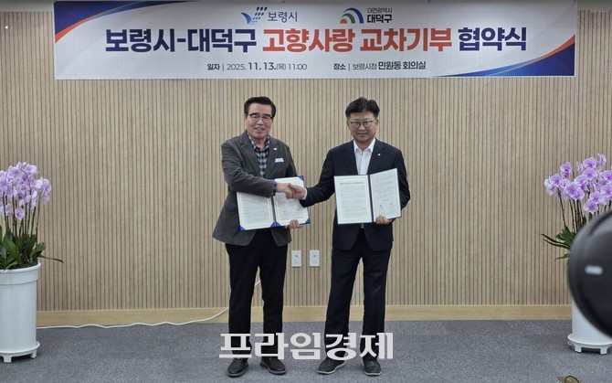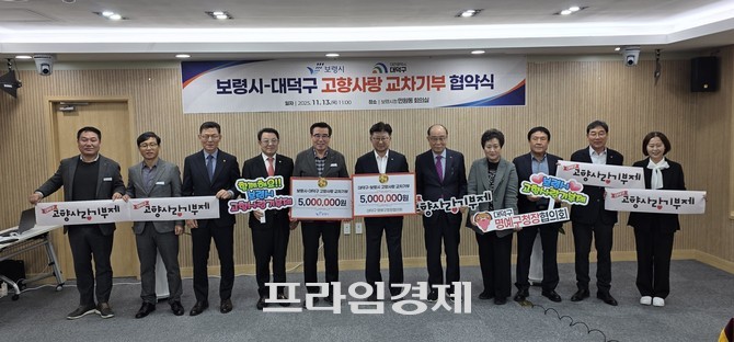 김동일 보령시장은 "교차기부 협약이 양 지자체 간 우호 증진과 상생 협력의 계기가 되길 바란다"며 "기부금은 시민 복리 증진과 지역 발전을 위한 사업에 소중히 사용하겠다"고 밝혔다.