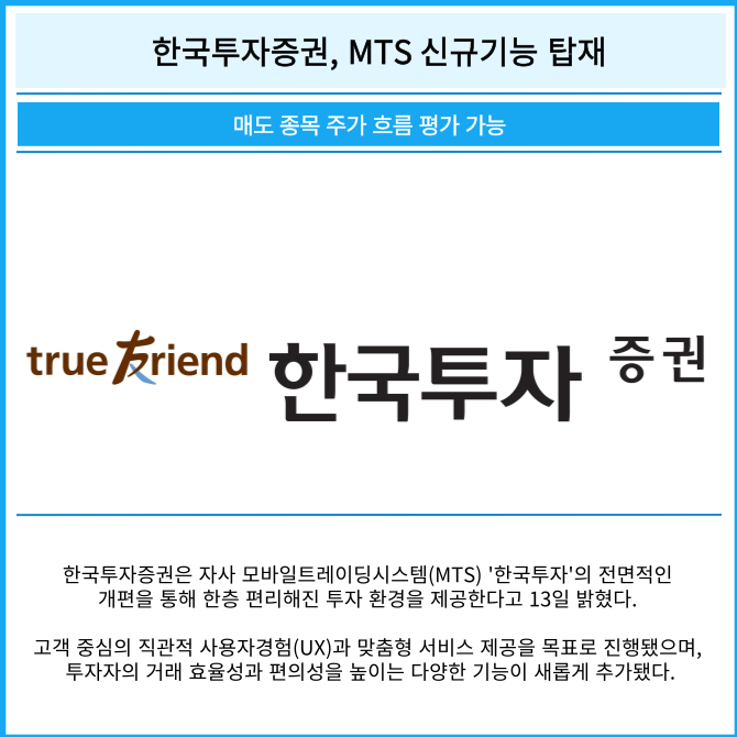 [카드] 한국투자증권, MTS 신규기능 탑재