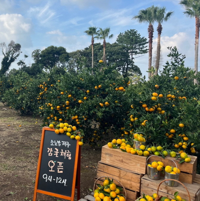 소노캄 제주 내에 위치한 감귤 농장은 숙소에서 편리하게 이동해 체험할 수 있으며, 매일 오전 9시부터 12시까지 선착순으로 운영된다. 체험을 진행하는 고객들은 감귤 한 바구니를 직접 수확하고, 현장에서 과즙이 가득한 감귤을 마음껏 시식할 수 있다.