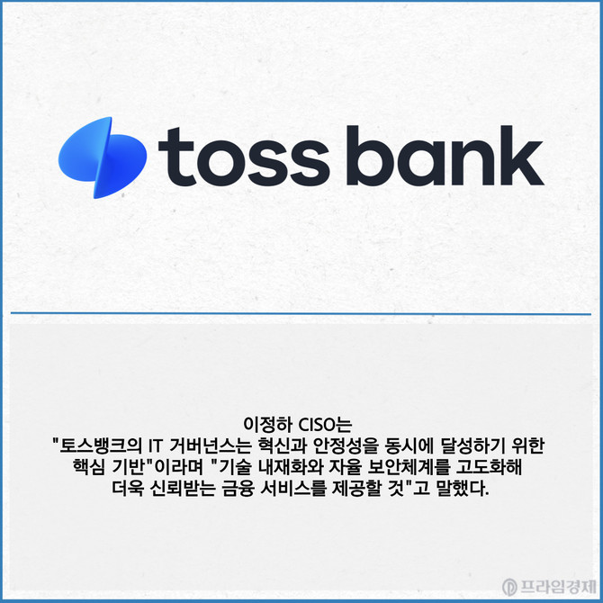 [카드] 토스뱅크, 인뱅 최초 IT 거버넌스·리더십 2관왕