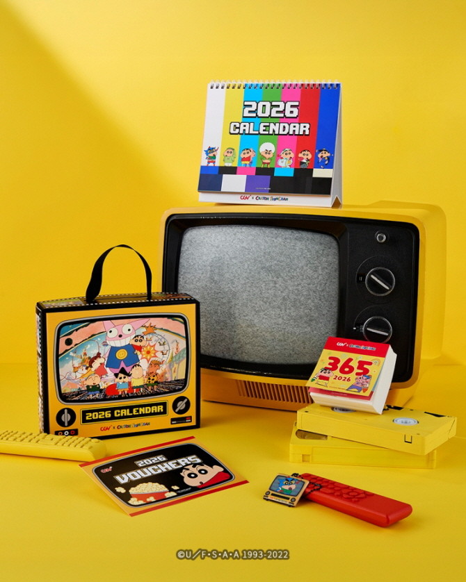 CGV가 연말을 맞아 '2026 짱구는 못말려 캘린더'를 출시한다고 14일 밝혔다. 지난 2023년 처음으로 선보인 'CGV X 짱구는 못말려 캘린더'는 매년 출시와 동시에 오픈런을 기록하며 화제를 모으고 있는 CGV의 대표 연말 굿즈다.