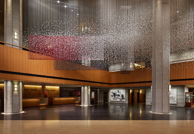 로비 천장의 아트웍은 붉은색 크리스탈 장식을 더해 크리스마스 시즌 작품으로 교체된다. 은하수를 연상시키는 박선기 작가의 '조합체(An Aggregation) 130121'에 블랙 컬러와 레드 컬러를 더해 웅장하고도 안정감 있는 로비에 활기와 따뜻함을 담았다.