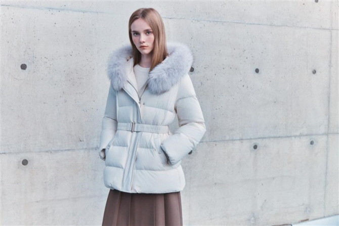 '폭스퍼 벨티드 롱 다운'은 오리 솜털과 깃털을 80:20 비율로 채운 덕 다운 상품으로 우수한 보온성을 자랑한다. 허리 벨트 디테일로 여성스러운 실루엣을 연출할 수 있다.