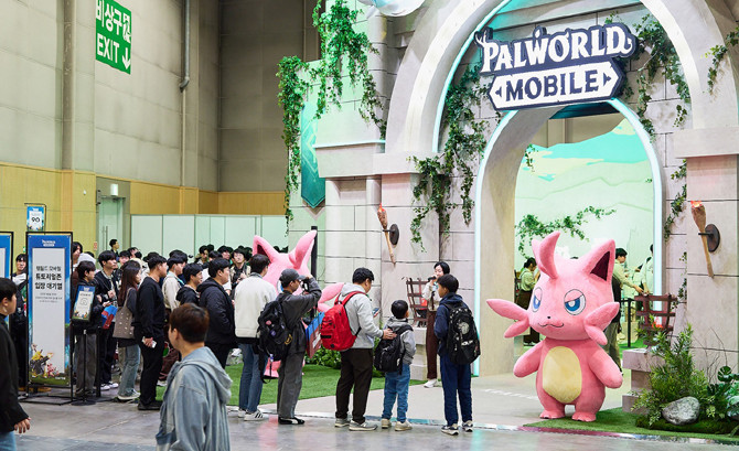 부스는 팰월드의 세계관을 모티브로 한 테마파크형 공간으로 꾸며져 게임 속 콘텐츠를 현실에서 생생하게 체험할 수 있도록 연출됐고, 관람랙은 '팰 사냥 존'과 '팰 포획 존'에서 미션을 수행하며 디지털 스탬프를 수집하고 모은 스탬프로 팰월드 모바일 굿즈를 교환했다.