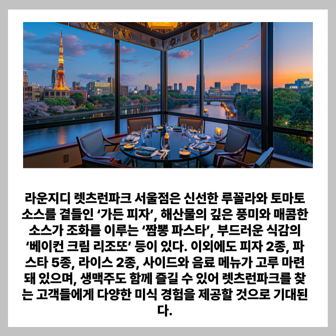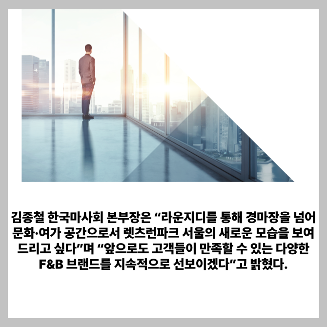 [프라임경제] 한국마사회(회장 정기환)가 렛츠런파크 서울 해피빌 2층에 캐주얼 이탈리안 레스토랑 '라운지디(Lounge D)'를 공식 14일 개장했다.