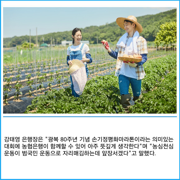[프라임경제] NH농협은행이 지난 16일 광복 80주년 기념 '2025 손기정평화마라톤'에 임직원 200명이 참가해 농업의 소중한 가치를 알리는 '농심천심(農心天心) 운동'을 홍보했다고 17일 밝혔다.