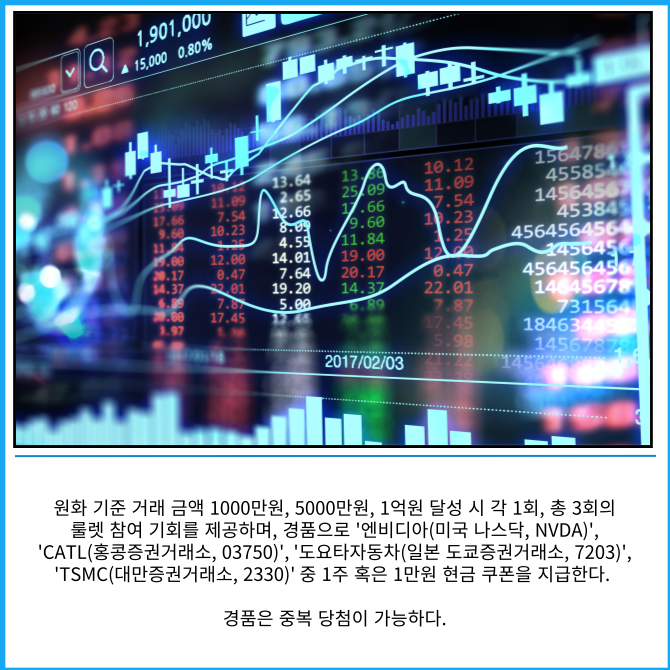 미국‧중국‧홍콩‧일본‧대만주식 거래 시 최대 3만원 현금 쿠폰 지급