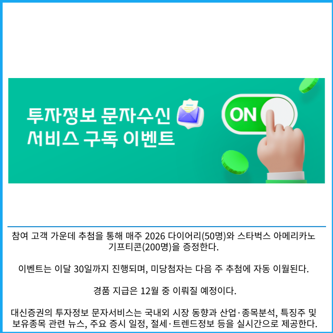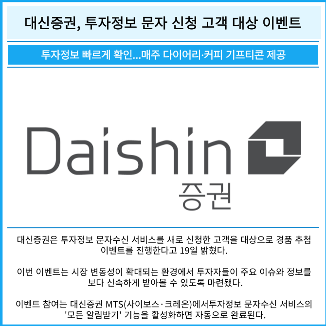 [카드] 대신증권, 투자정보 문자 신청 고객 대상 이벤트