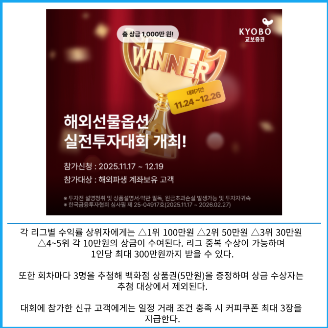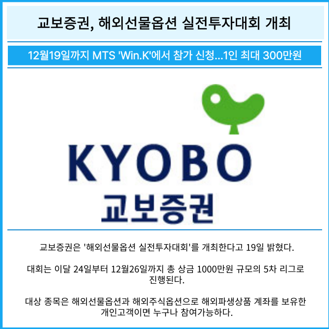 [카드] 교보증권, 해외선물옵션 실전투자대회 개최