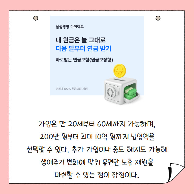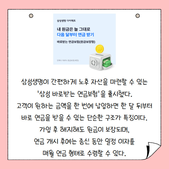 [카드] 삼성생명, '바로 받는 연금보험' 출시