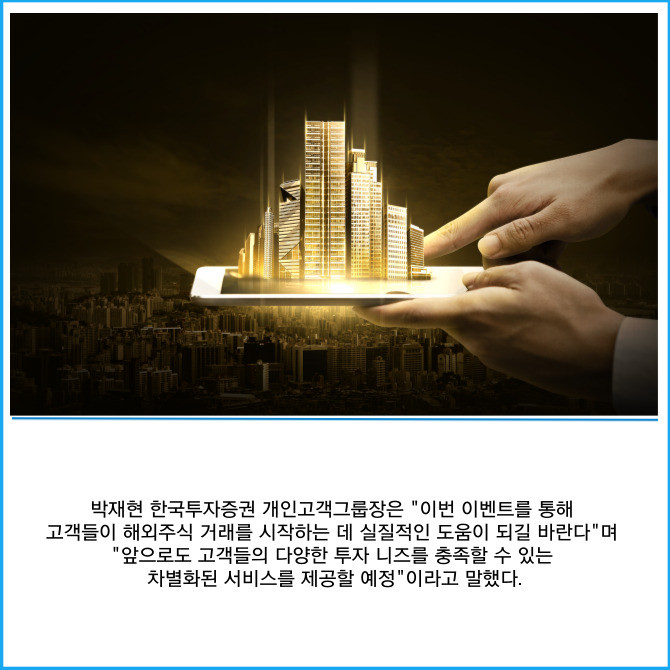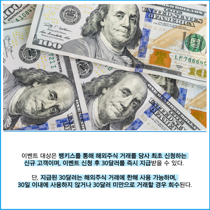 [프라임경제] 한국금융지주(071050) 자회사 한국투자증권은 내달 31일까지 뱅키스(BanKIS) 고객을 대상으로 해외주식 거래 신규 고객에게 30달러를 지급하는 이벤트를 진행한다고 19일 밝혔다.