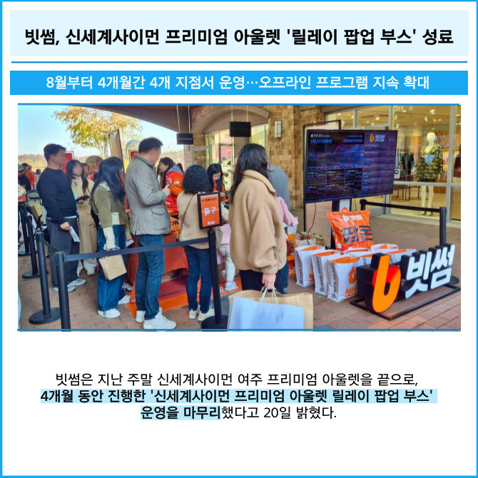 [프라임경제] 빗썸은 지난 주말 신세계사이먼 여주 프리미엄 아울렛을 끝으로, 4개월 동안 진행한 '신세계사이먼 프리미엄 아울렛 릴레이 팝업 부스' 운영을 마무리했다고 20일 밝혔다.