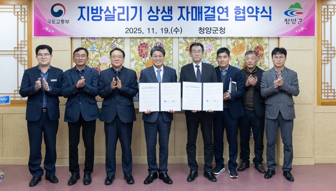 [프라임경제] 충남 청양군(군수 김돈곤)은 지난 19일 군청 접견실에서 국토교통부 대전지방국토관리청(청장 방윤석)과 '지방살리기 상생 자매결연 협약'을 체결하고, 인구감소와 지역소멸 위기에 대응하는 중앙–지방 협력체계 구축에 나섰다고 밝혔다.
